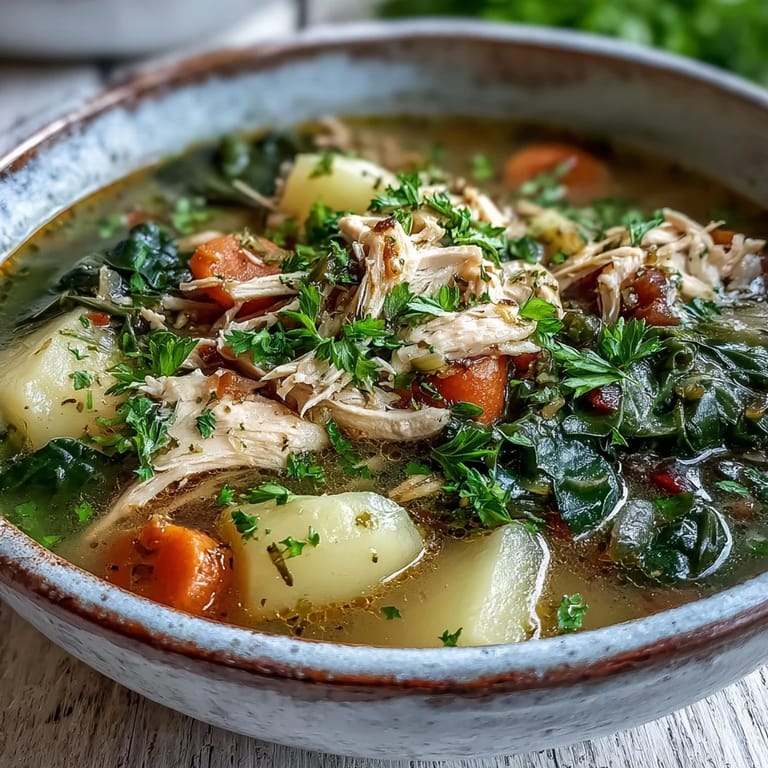 This soup is complete on its own, but there's no shame in serving it with crusty bread for soaking up the broth, or spooning it over brown rice if you want something more substantial. Leftovers keep beautifully in the refrigerator for up to four days, and it actually freezes well if you remove the bay leaf and let it cool completely first. The only real rule is to never, ever reheat it at a rolling boil—gentle warmth preserves the texture of the greens and keeps the chicken from turning rubbery.