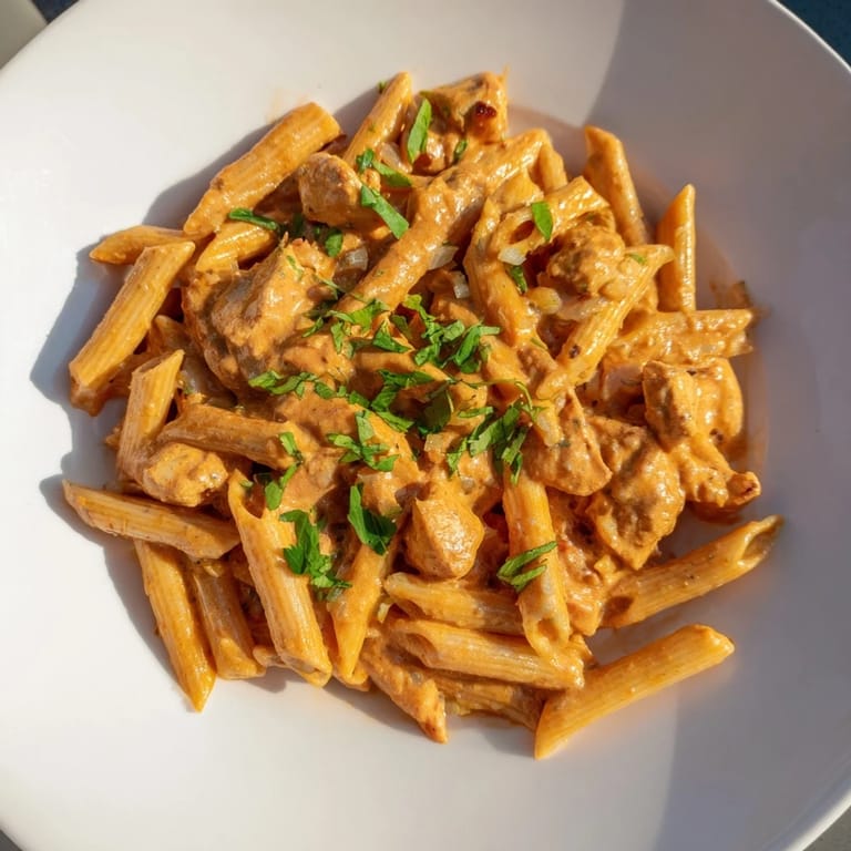 Save A fusion dish that combines the bold, aromatic flavors of classic chicken tikka masala with tender pasta in a rich, creamy sauce.
