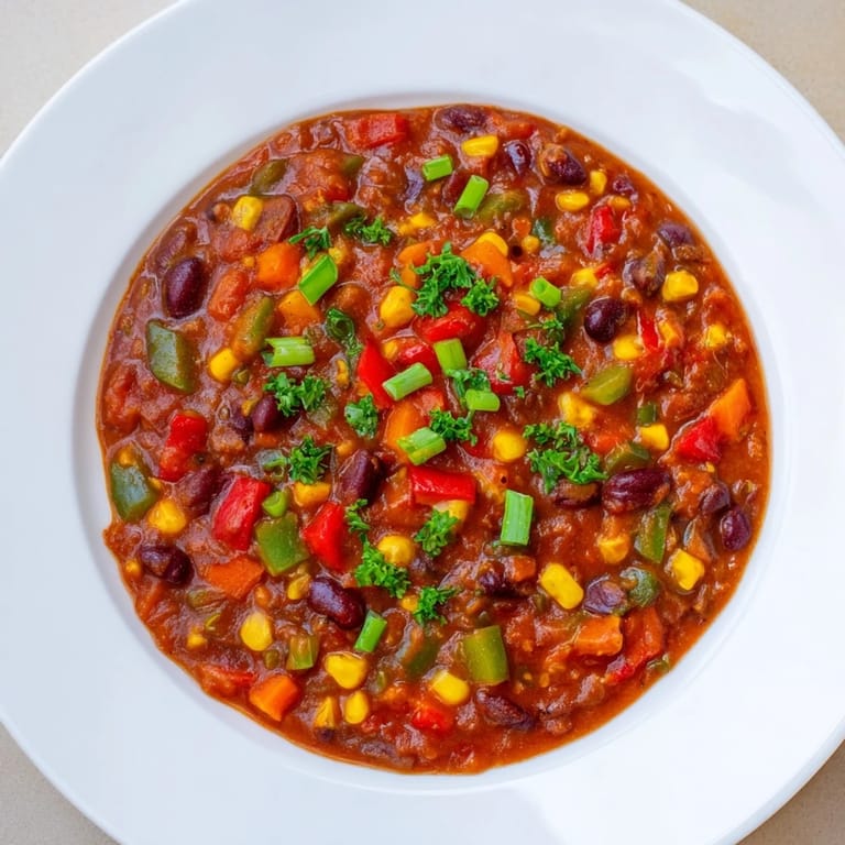 Save A hearty, flavorful chili packed with beans, corn, tomatoes, and warming spices. Perfect for a filling, budget-friendly, vegan and vegetarian meal.