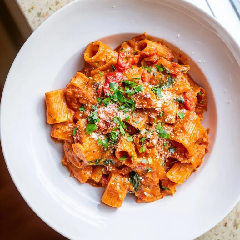 Save A vibrant, oven-baked pasta packed with Mediterranean flavors, featuring roasted garlic, fresh herbs, sun-dried tomatoes, and creamy feta. A comforting vegetarian dish perfect for weeknights or entertaining.