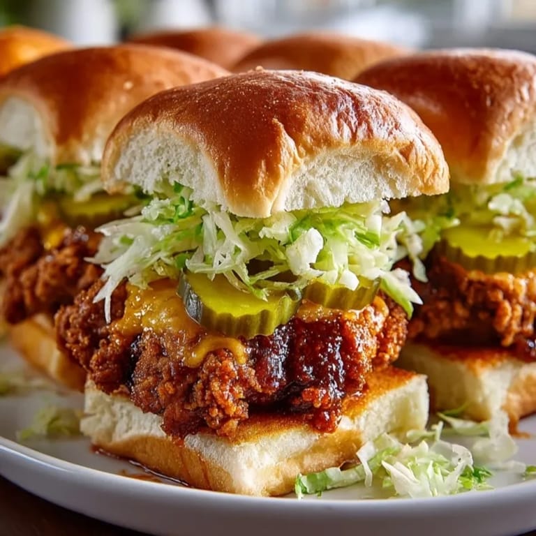 Save This fiery Nashville Hot Chicken Sliders recipe delivers all the flavor and heat of the classic Southern dish in a compact, crowd-pleasing size perfect for parties or easy weeknight dinners. With crunchy fried chicken, tangy pickles, creamy slaw, and signature cayenne-spiked oil, each bite is spicy, juicy, and unforgettable.