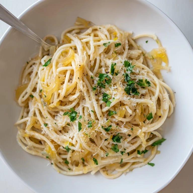 Save There's something about the smell of onions turning golden that stops me mid-thought, and I first understood this when I was supposed to be making a quick weeknight dinner. Instead of rushing through, I found myself standing there, watching those thin slices transform into something rich and sweet, and I thought, why not build a whole pasta around this moment? That's how this dish came to life—not from a recipe book, but from the question of what happens when you let caramelization become the star.