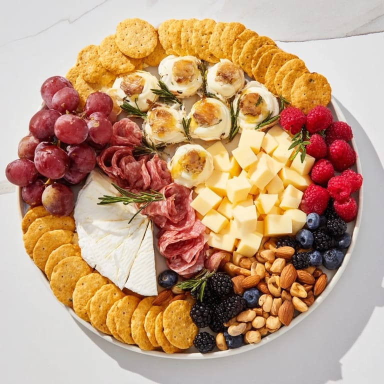 This recipe isn't precious about specific ingredients—it's a framework for what you love and what your guests prefer. In summer, I swap out some berries for fresh apricot halves or sliced stone fruits. In autumn, I add candied pecans instead of plain almonds and maybe include some dried apricots for deeper color. For winter, I've used pomegranate seeds and candied citrus peel. For a vegan table, plant-based cheeses have gotten legitimately good; use ones you'd actually want to eat. If someone's allergic to tree nuts, fill those spaces with seeds—sunflower, pumpkin—or more berries. The point is: this platter belongs to you and your guests, so adjust it to reflect what you actually want to serve.