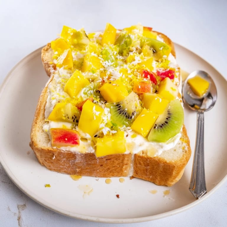 Save A vibrant, creamy take on the viral custard toast, featuring coconut yogurt and a medley of fresh tropical fruits. The perfect balance of crisp, creamy, and fruity goodness for breakfast or brunch.