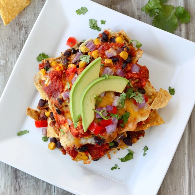 Save A fast, hearty, and flavorful vegetarian casserole layered with black beans, corn, tortillas, salsa, and cheese—perfect for busy weeknights.