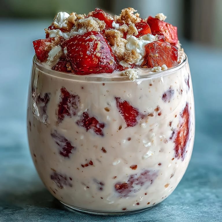 Save There's something magical about waking up to breakfast already waiting for you, especially when it tastes like dessert but actually fuels your day. I stumbled onto this cottage cheese and strawberry overnight oats combination on a Tuesday morning when I was tired of the same old routine and craving something that felt indulgent without the guilt. The first spoonful reminded me of cheesecake, but lighter, creamier, and somehow more satisfying because I'd made it myself. What started as an experiment with ingredients I had on hand became my go-to when I need something nourishing that doesn't require thinking before coffee.