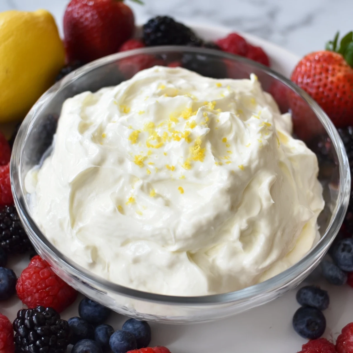 A light and creamy fruit dip, perfect for pairing with fresh berries and other fruits. Sweet, tangy, and irresistibly fluffy—ideal for parties or a refreshing snack.