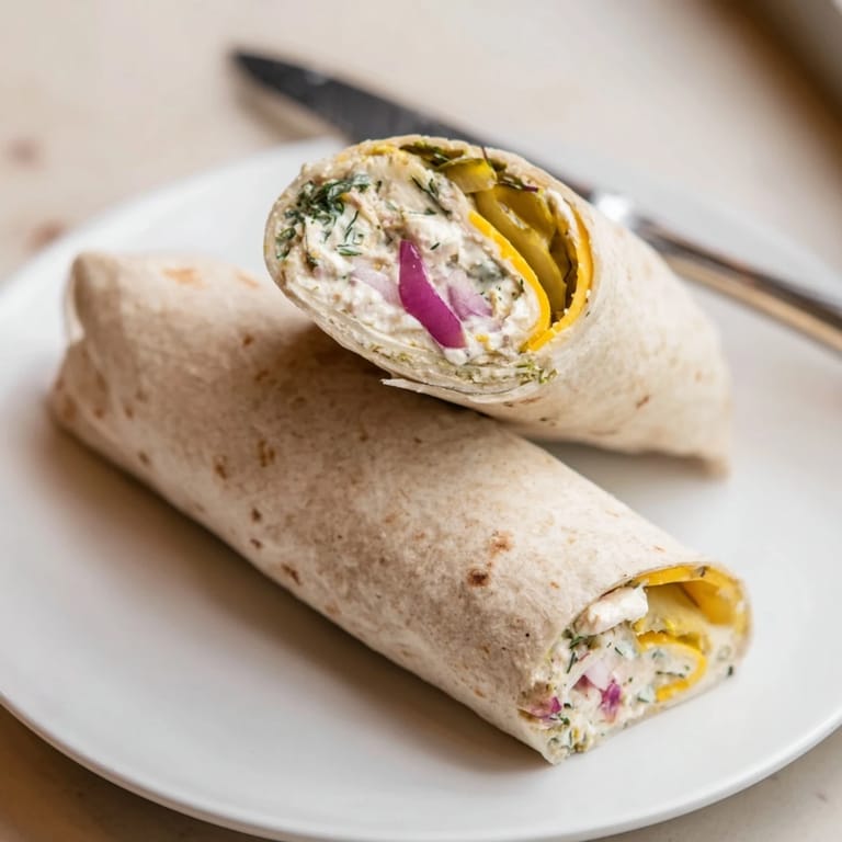 Pickle in a Blanket features crisp dill pickles wrapped in flour tortillas with a blend of cream cheese and cheddar. Optional fresh dill, red onion, and mustard give extra flavor. Quick to make and easy to slice into party-ready bites, these vegetarian snacks suit picnics, gatherings, or casual munching at home. Chill rolls for neat slices or serve whole, pairing with a cold beverage. Flexible cheese and cream cheese choices allow taste variations, while all ingredients come together in just 10 minutes.