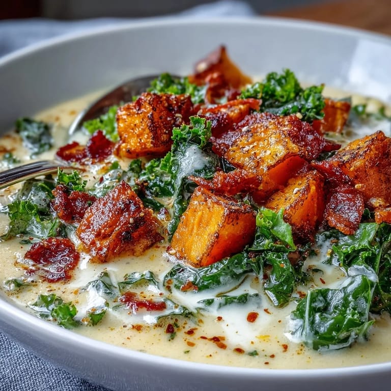Save The hint of smoky pancetta drifting from my kitchen instantly makes it feel like sweater weather, no matter the season. One afternoon, a sudden downpour had me rummaging through my fridge for comfort, and out tumbled sweet potatoes, kale, and a block of pancetta tucked away for just such a meal. My favorite part of this chowder is how quickly the colors paint the pot—warm oranges and greens swirled together by the aroma of cumin and thyme. There's a certain joy that comes from turning simple, earthy ingredients into a pot of something that tastes this cozy. Even on the busiest weeks, those scents pull everyone close, each person hoping for an extra crispy bite of pancetta on top.